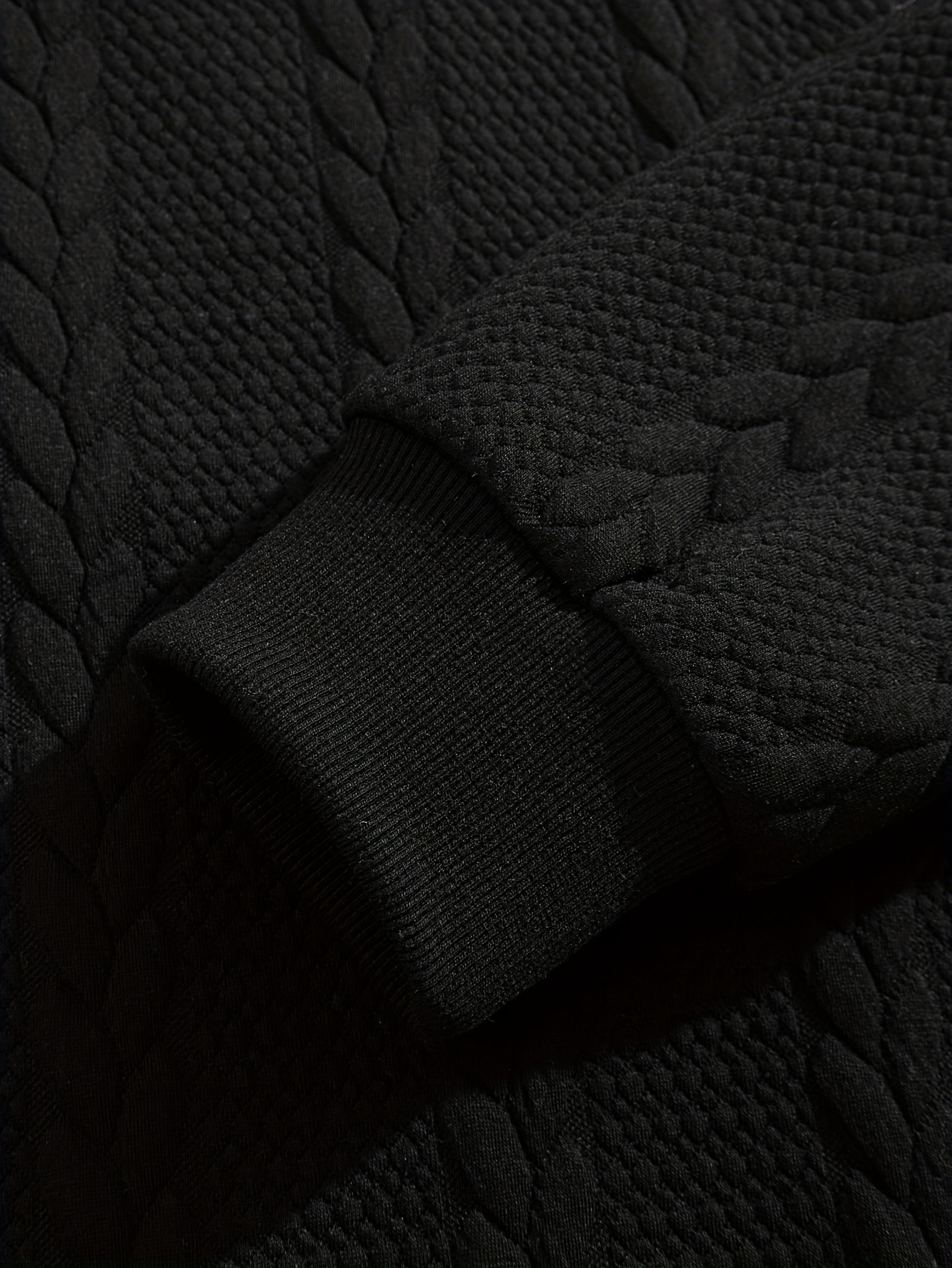 Jacquard Preppy Collared Neck Long Sleeve Embroidered Loose Fit Regular Length Knit Fabric Hoodie