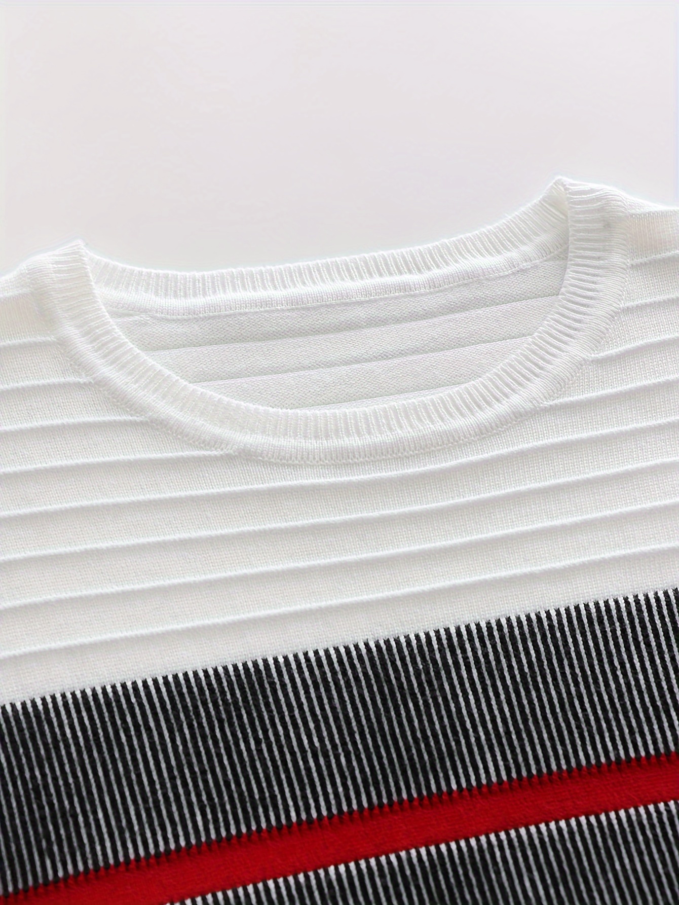 Men'S Fashionable Striped Knit Pullover Sweater - Stretchy Blend, Long Sleeve, Round Neck, Black/White/Red Vertical Stripes, Casual Style for Fall/Winte