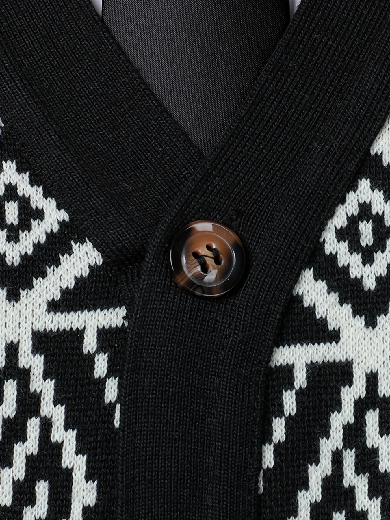 [Casual Cardigan Vest] Casual Color Block Men's Plaid Knit Cardigan Vest | Sleeveless, Regular Fit, V-Neck with Buttons - for Spring/Fall