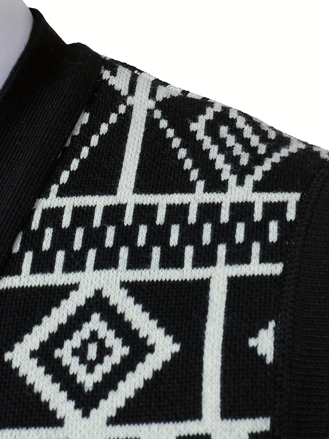 [Casual Cardigan Vest] Casual Color Block Men's Plaid Knit Cardigan Vest | Sleeveless, Regular Fit, V-Neck with Buttons - for Spring/Fall
