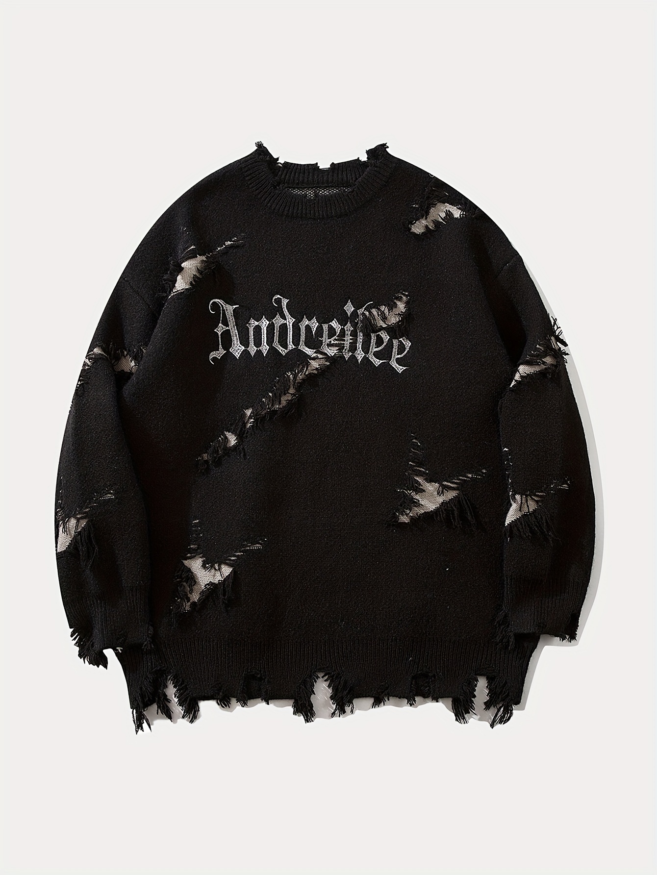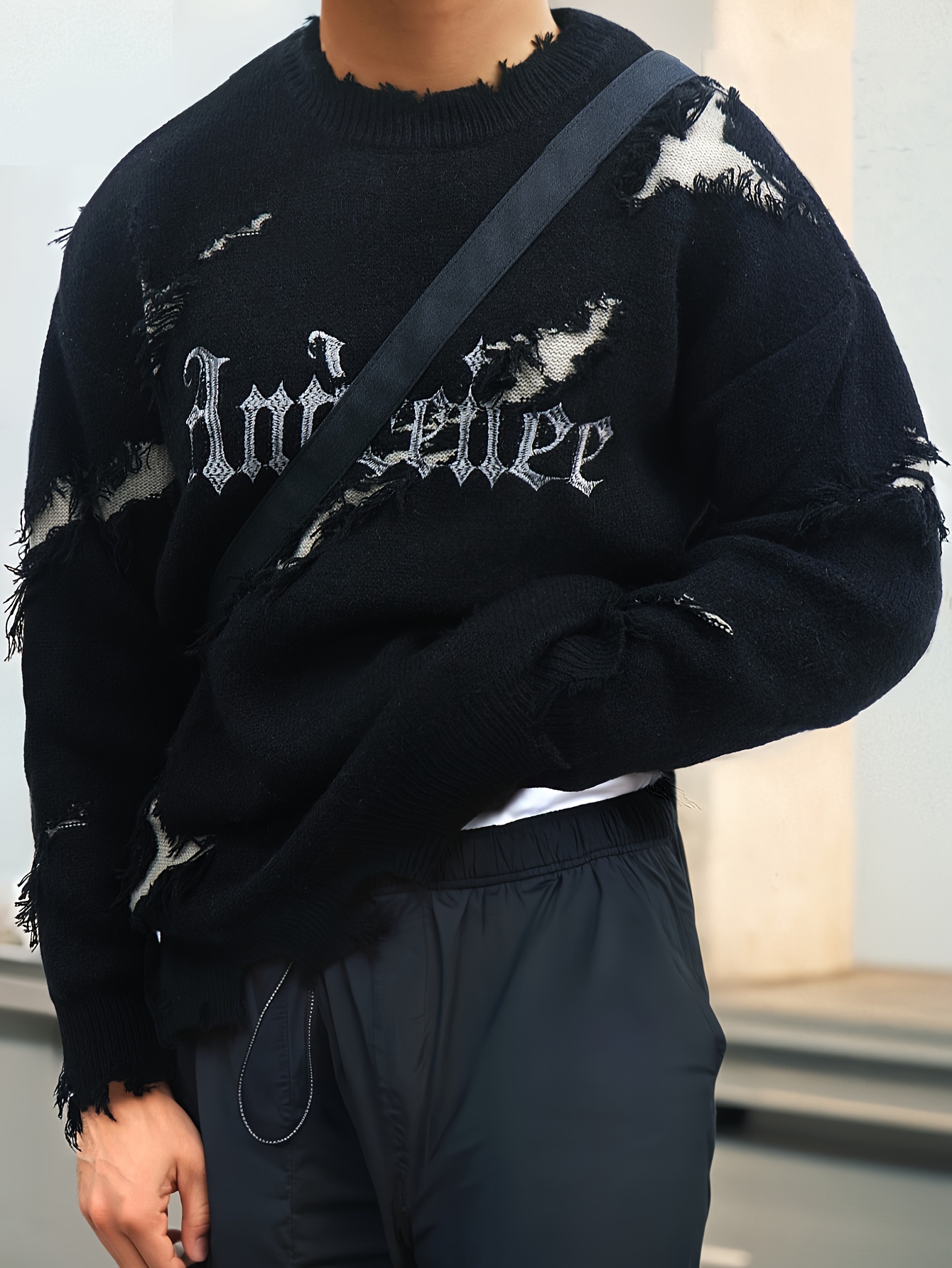 [Distressed Sweater] Distressed Long Sleeve Sweater | Men's & Women's Streetwear Round Neck Pullover | Loose Fit Casual Autumn Winter Apparel