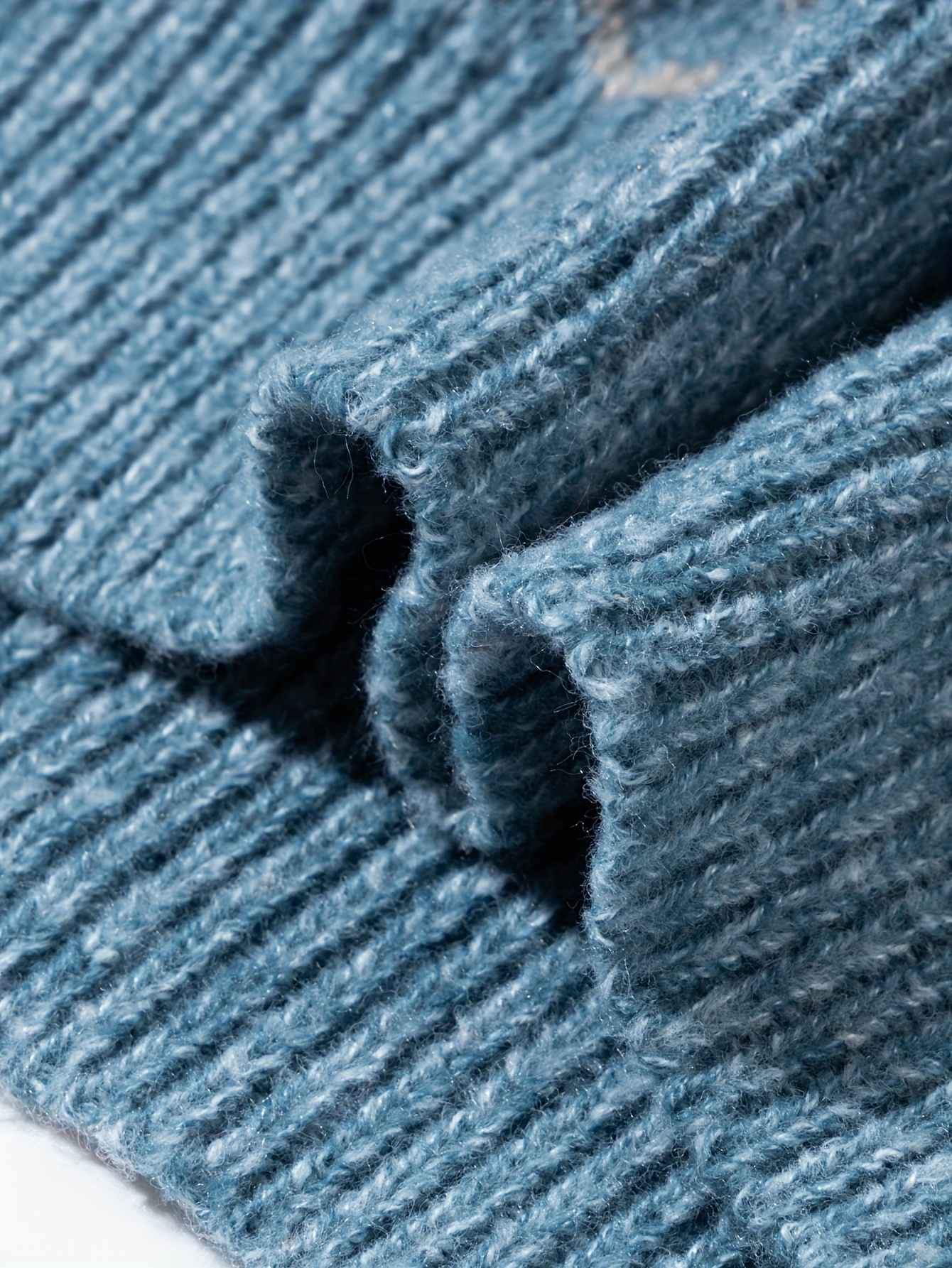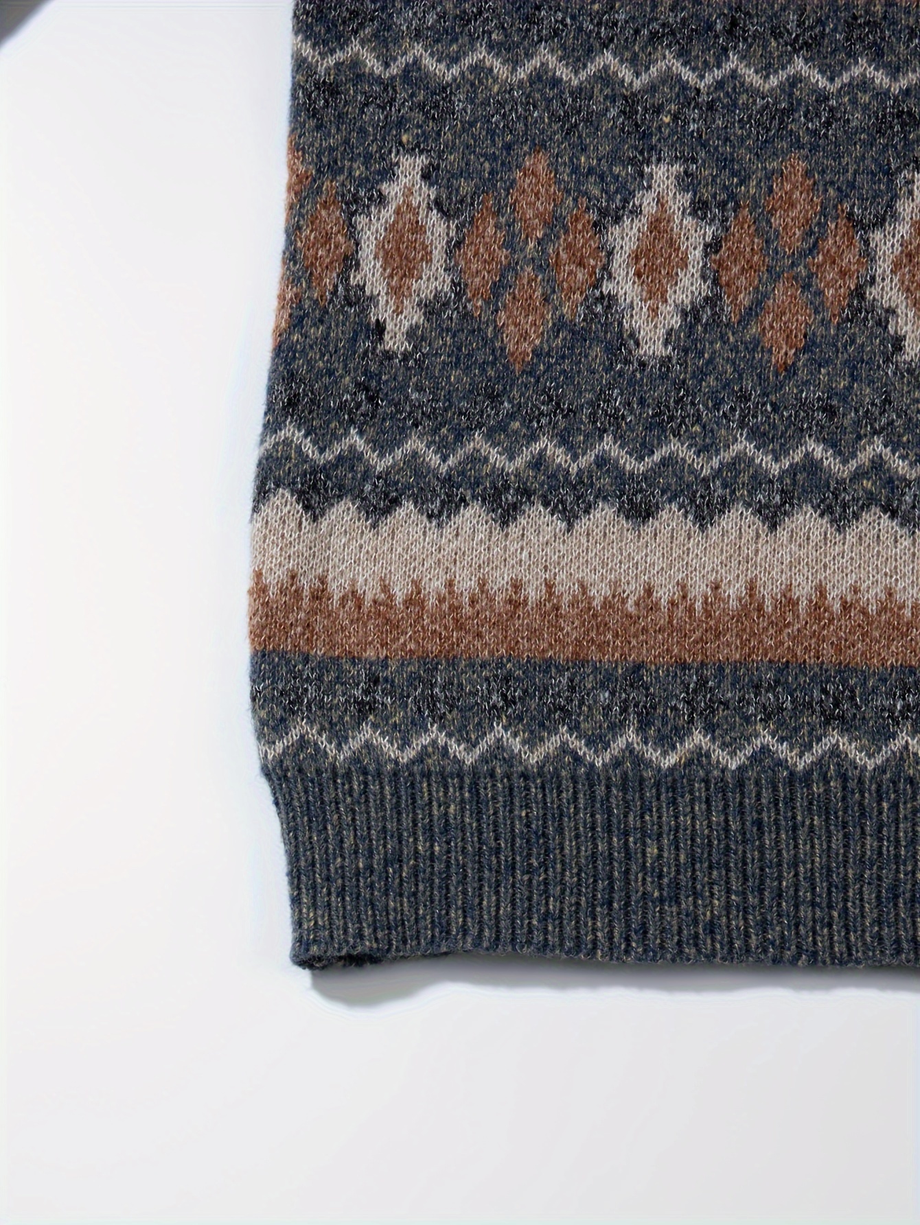 Men's Casual Color-Block Geometric Knit Sweater - Loose Fit Ribbed Detail Pullover, Machine Washable Autumn Winter Warm Crewneck Sweater for Casual Attire, Knitted Sweater, Durable Winter Wear