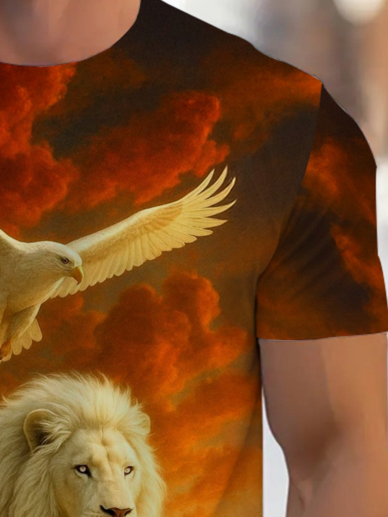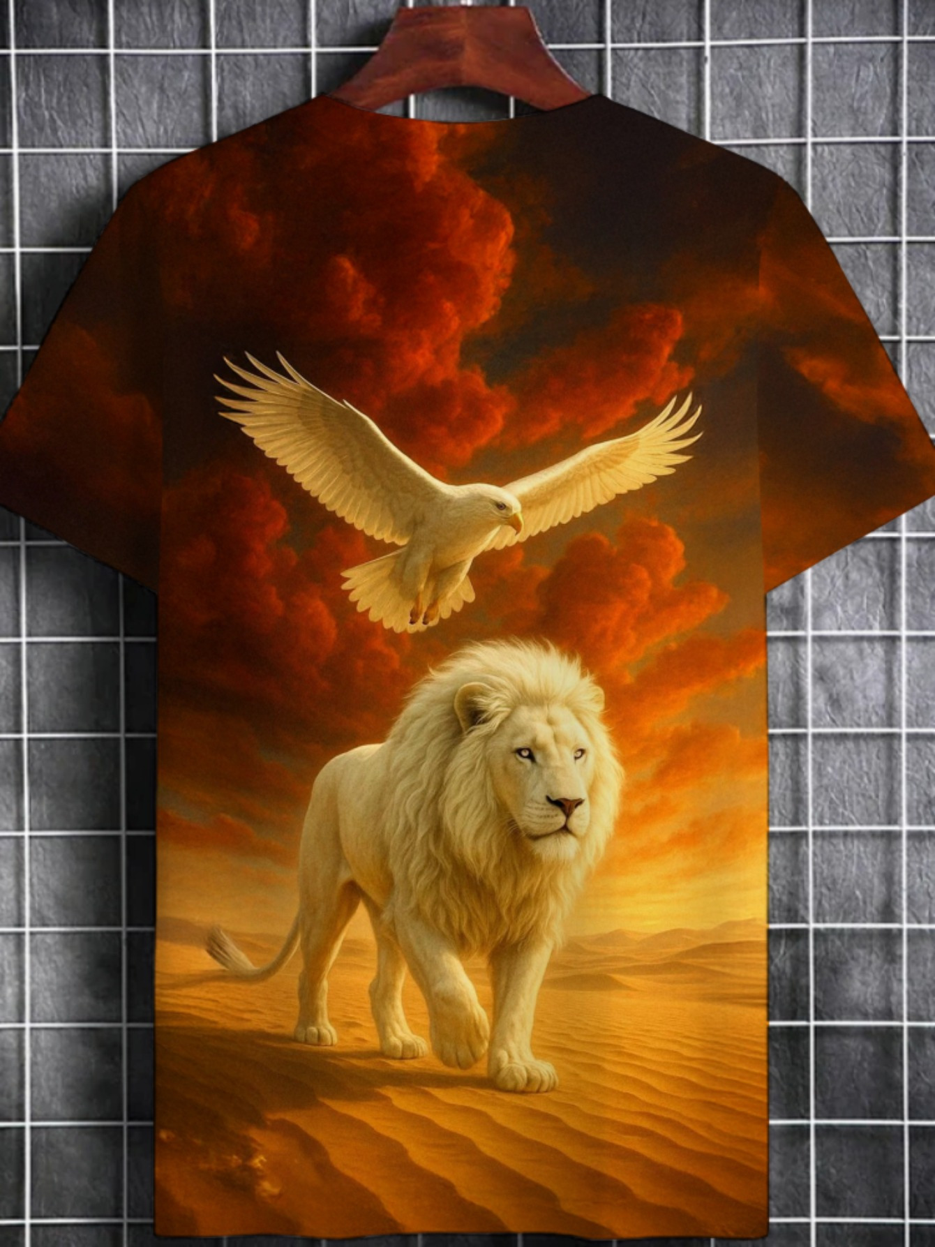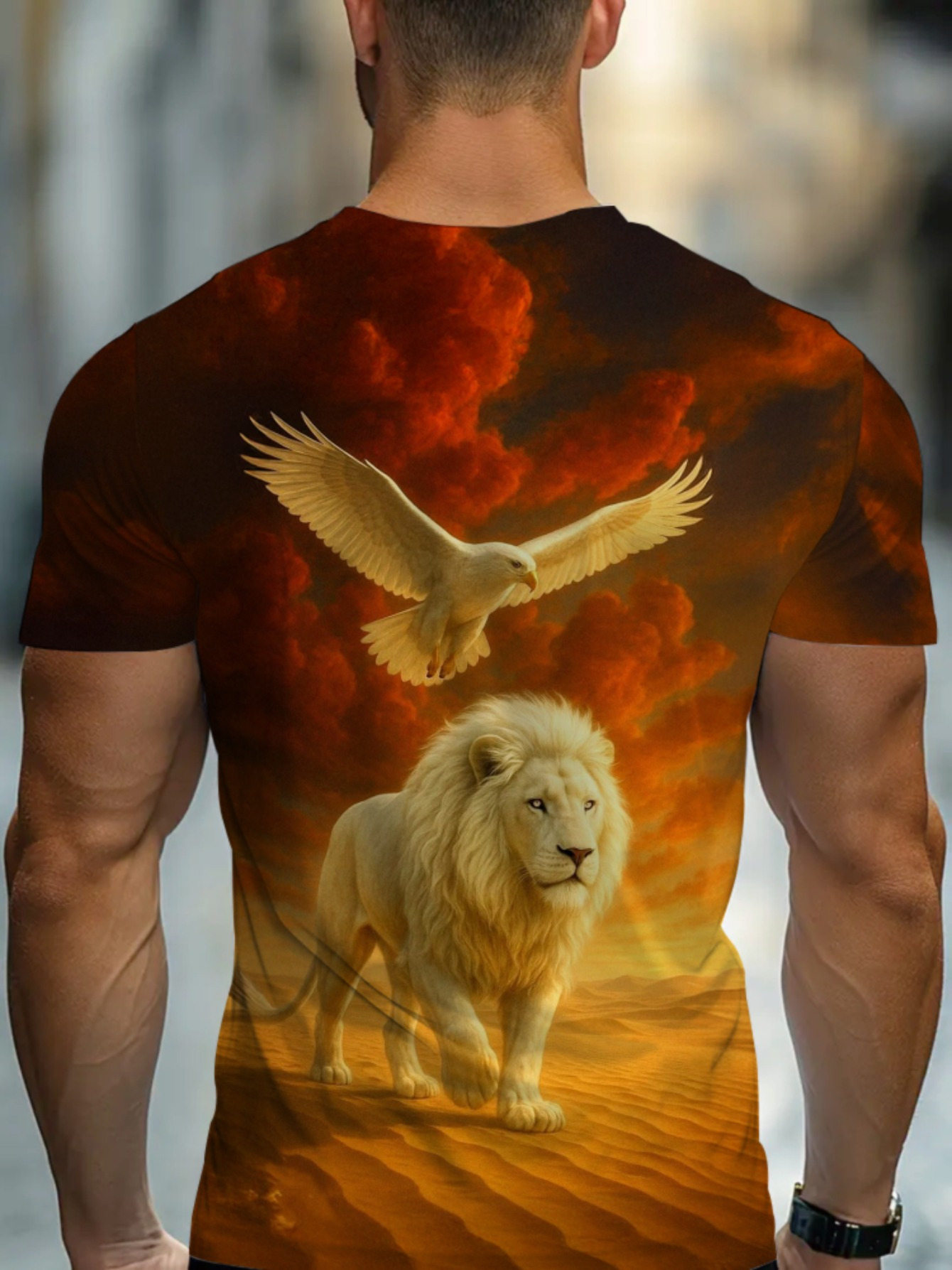 Men'S Lion and Eagle Graphic T-Shirt - Soft, Lightweight, Durable Fabric, Reddish Brown, Casual & Comfortable Fit for All Seasons, Ideal for Casual Attire and Outdoor Activities, Everyday Tshirt | Bold Print Shirt | Lightweight Shirt
