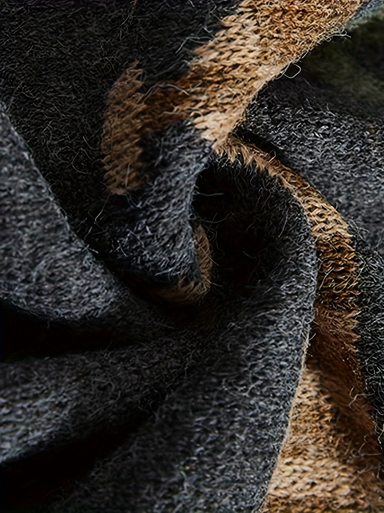 Preppy Geometric-Pattern Knit Cardigan, 80% Acrylic 20% Nylon, V-Neck Long Sleeve Loose-Fit, Slight Stretch, Spring/Fall Season Outerwear