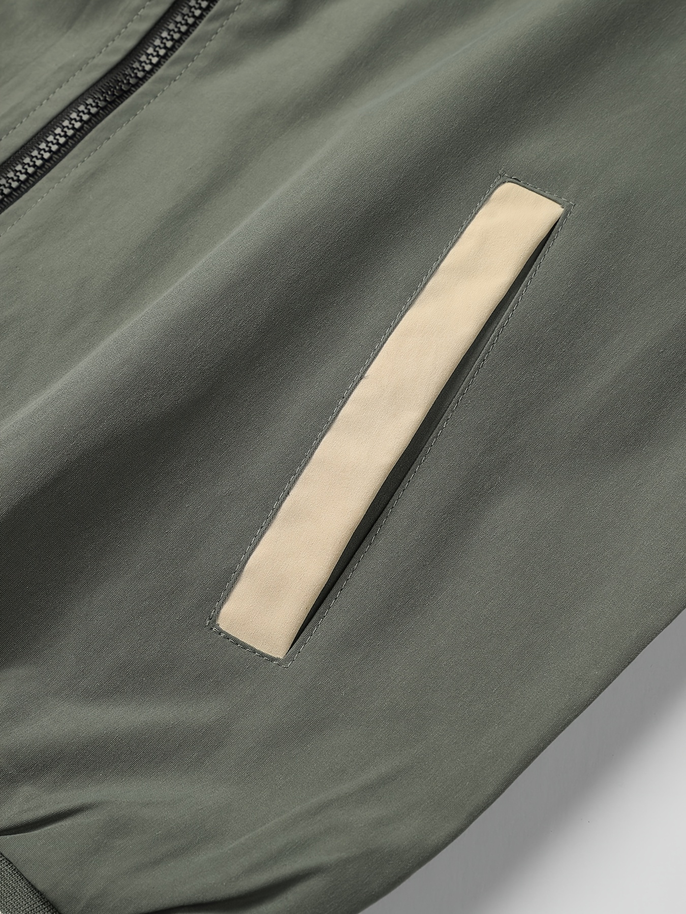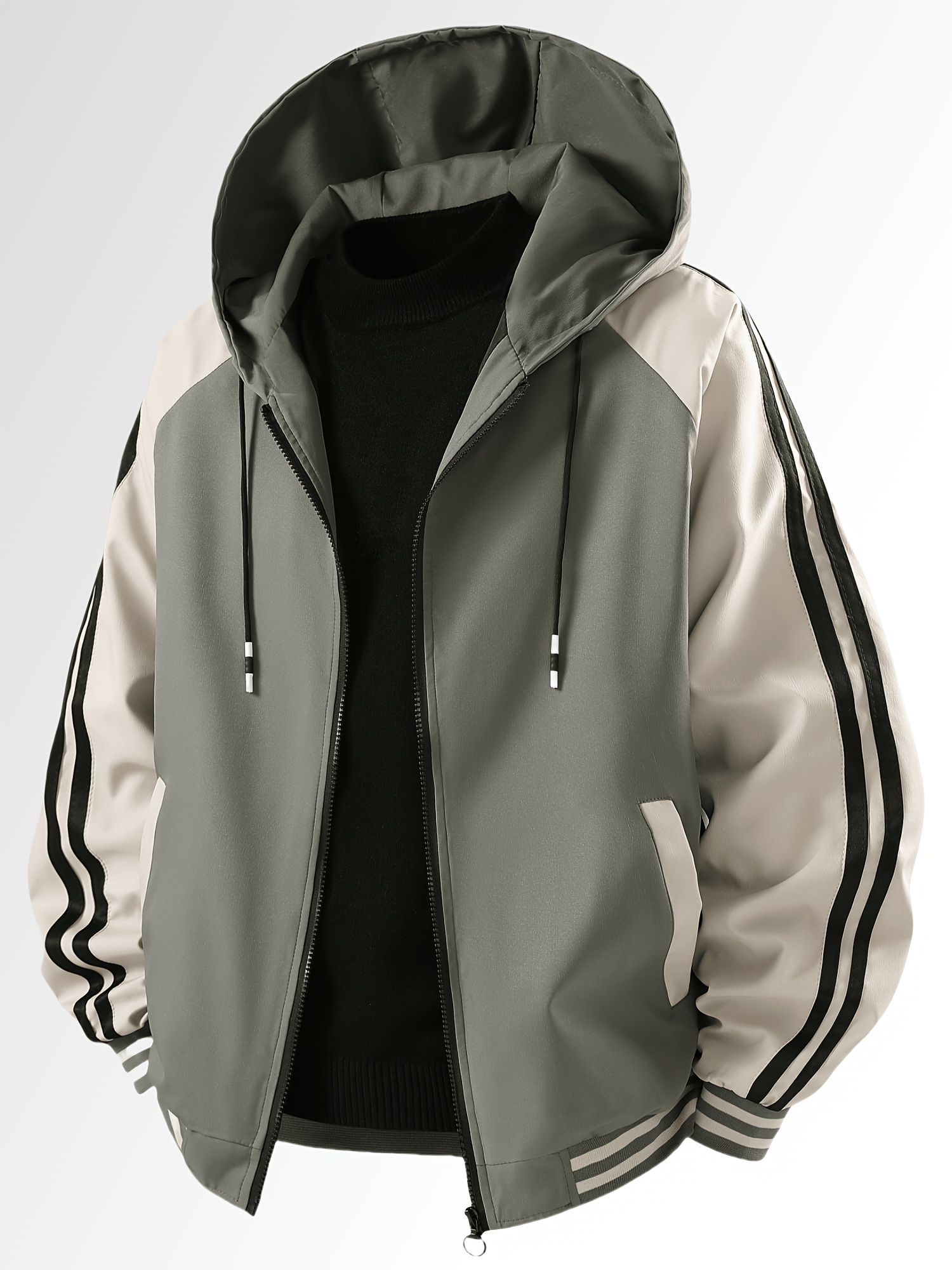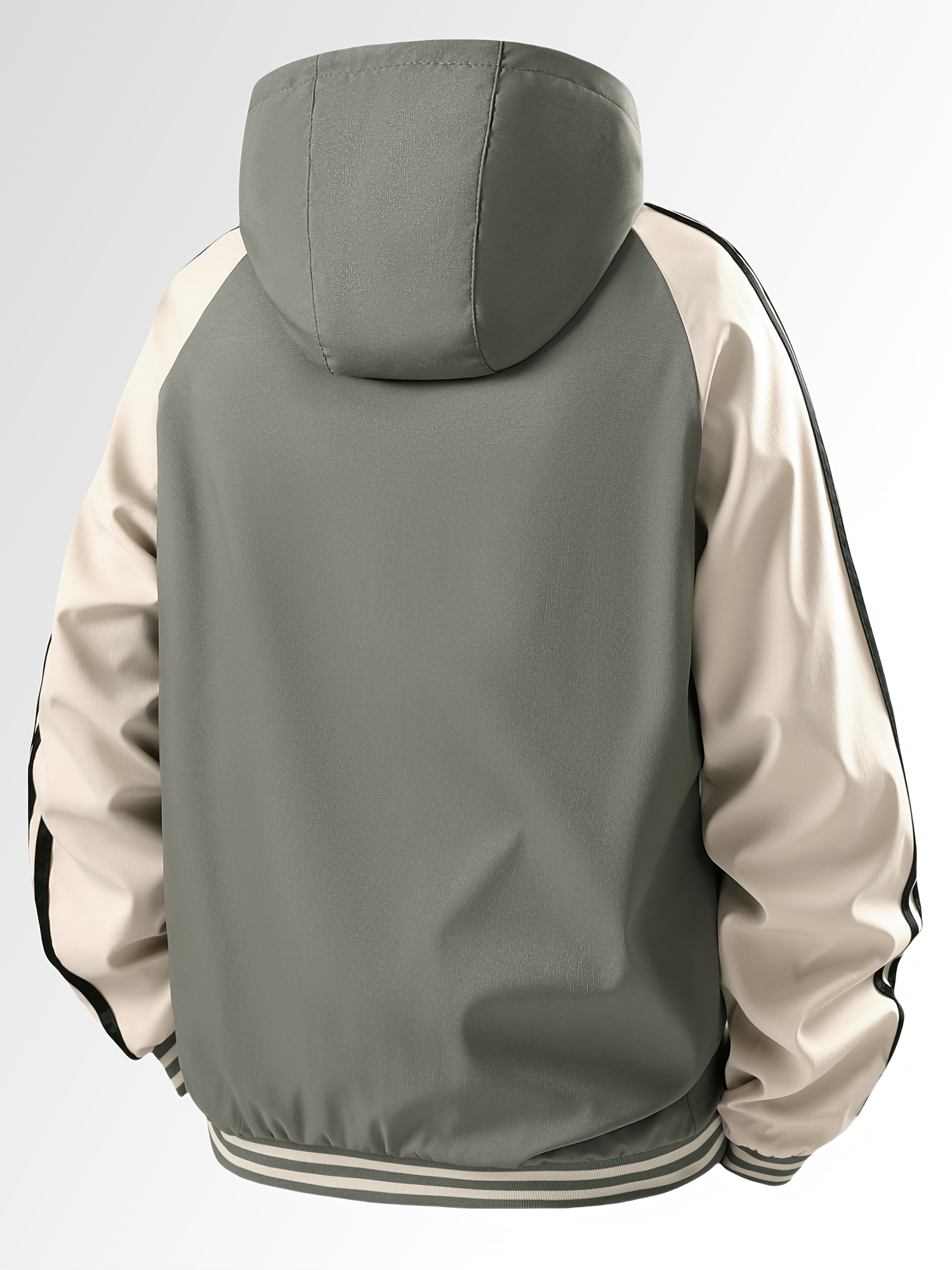 [Trendy Polyester Hooded Jacket] Trendy Lightweight Polyester Men's Casual Zip-Up Hooded Jacket - Color Block Design with Striped Accents, Perfect for Spring & Autumn